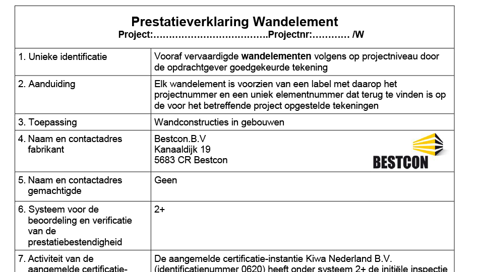 Voor onze producten verstrekken we een prestatieverklaring.