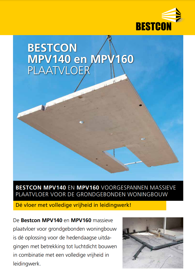 De Bestcon MPV140 en MPV160 massieve plaatvloer voor grondgebonden woningbouw is dé oplossing voor de hedendaagse uitdagingen met betrekking tot luchtdicht bouwen in combinatie met een volledige vrijheid in leidingwerk.