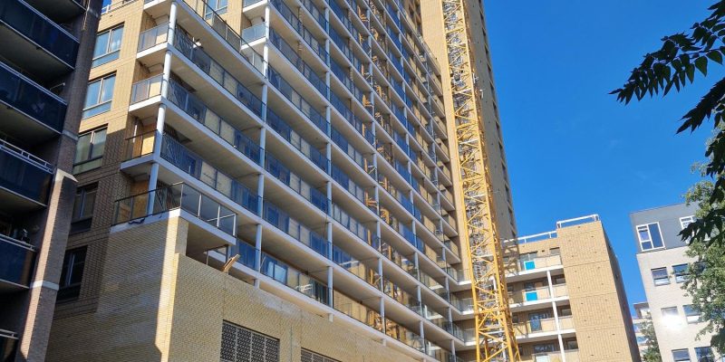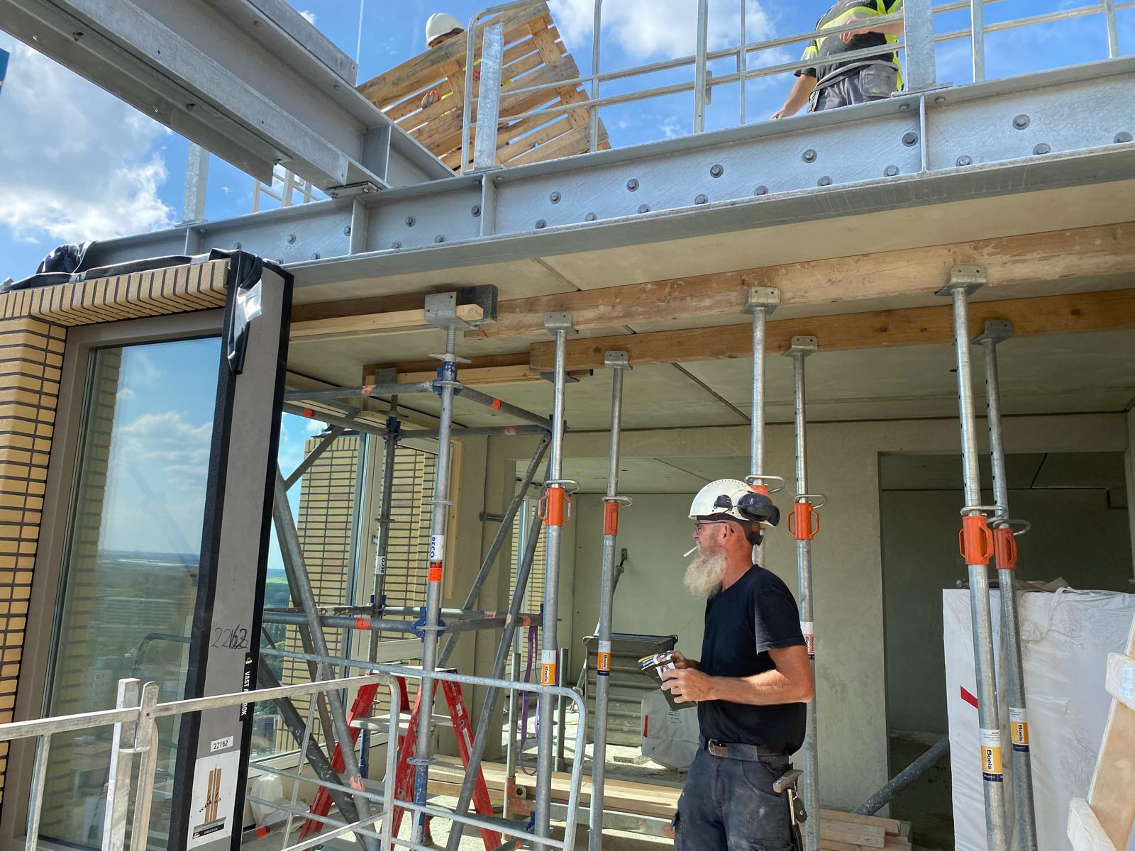 Daarnaast worden door Gejamont aan de voorgevel de balkons gehangen met behulp van het I-Qlick systeem en worden de HSB gevels los-vast gemonteerd.
