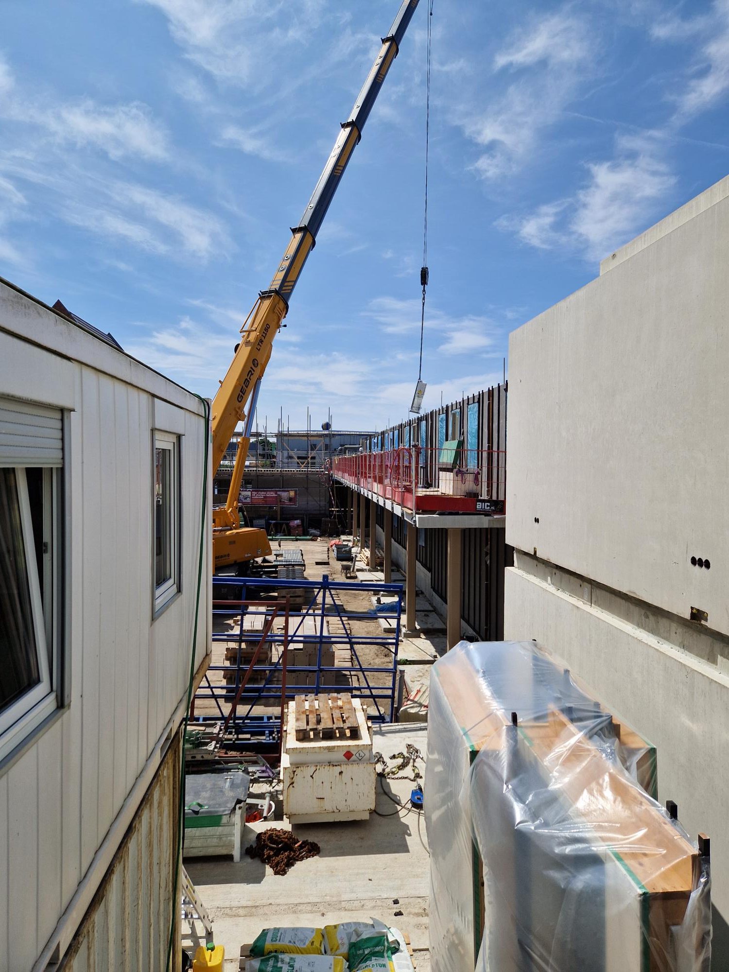 “We hadden letterlijk maar plek voor één rupskraan,” vertelt Hans van der Burgt, projectleider bij Bestcon. “Rondom de bouwplaats was geen ruimte voor opslag. Dat betekent dat elke prefab levering just-in-time moet aankomen. Een uitdaging, maar met een strakke planning en een hechte samenwerking hebben we het voor elkaar gekregen.”