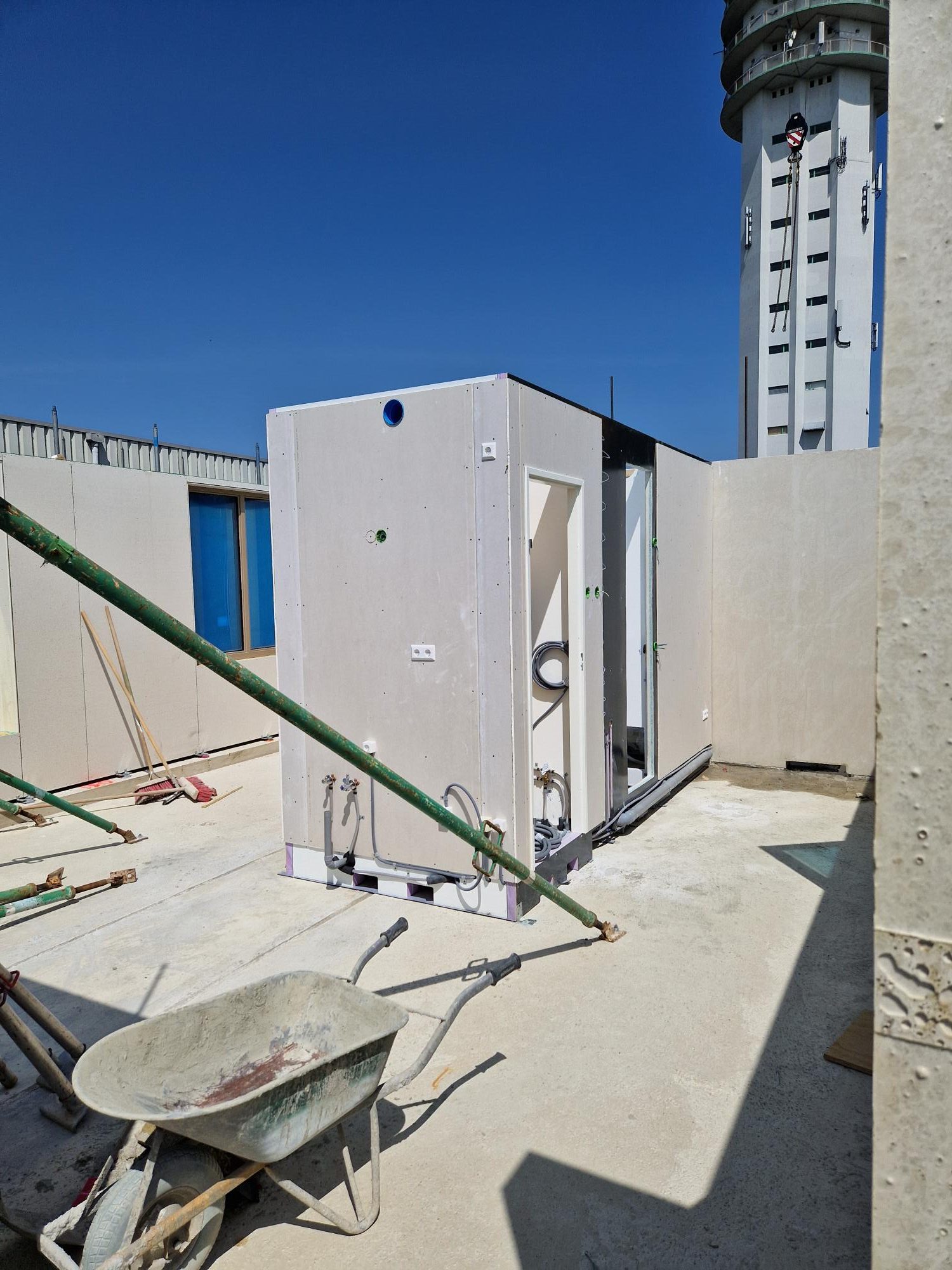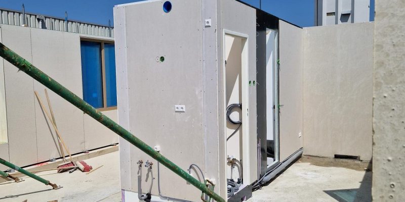 André benadrukt het gemak van de samenwerking: “Het is fijn dat we met één partij kunnen schakelen. Bestcon engineert, produceert en monteert. Dat is overzichtelijk en efficiënt. Hun Bestcon60-systeem spreekt ons bovendien erg aan. Omdat er geen installaties zijn geïntegreerd, scoort dit systeem gunstig in de GPR-berekeningen. Bij Kickstart combineren we dit met prefab modules waar de installatieruimte, badkamers en meterkasten in zijn opgenomen. Ook deze prefab modules zijn door Bestcon geplaatst, waardoor de installateur eigenlijk alleen nog maar wat installatiecomponenten buiten de prefab module hoeft af te monteren en het systeem in te regelen”