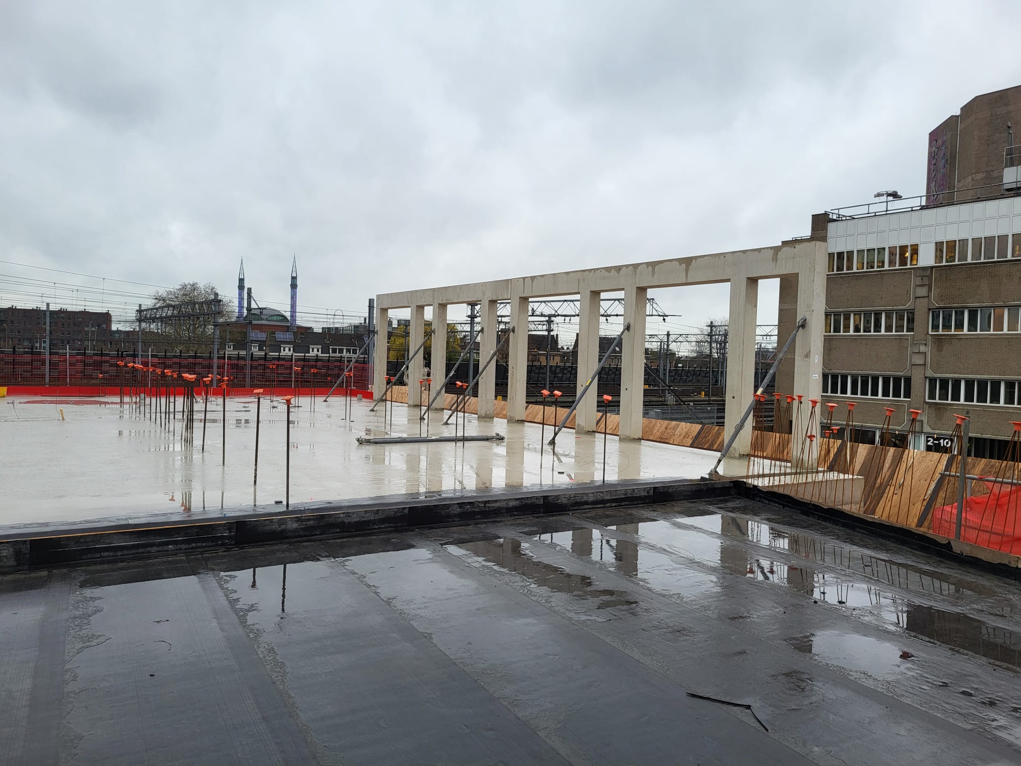 Het gebouw staat volledig op veren die de trillingen van treinverkeer en overige OV-bewegingen moeten neutraliseren. Deze techniek vraagt om uiterste precisie in voorbereiding, productie en montage. Ook de architectuur maakt het project bijzonder. Het gebouw kent schuine gevels en ronde lijnen die exact moeten aansluiten op de prefab onderdelen.