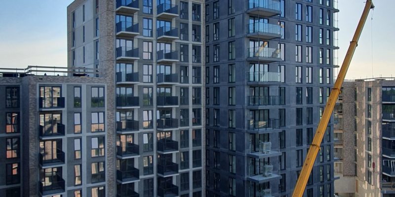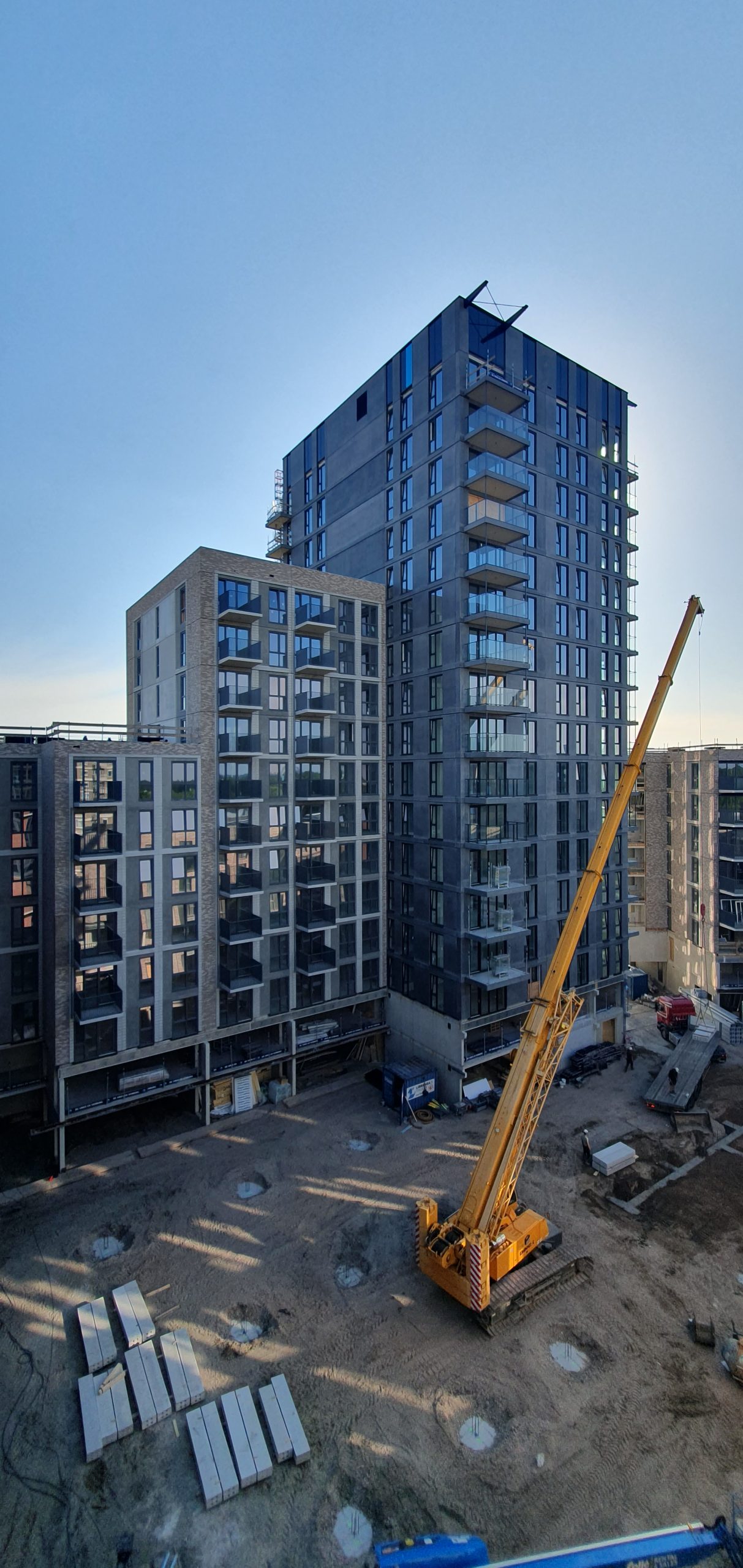 Het hoogste blok is 17 bouwlagen hoog en wordt daarmee, inclusief dakranden, maar circa 54 meter hoog.